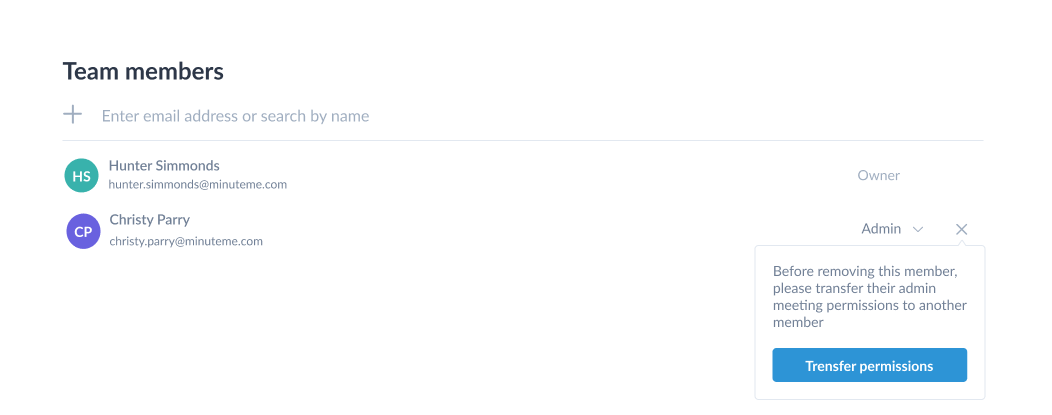 If there are meetings where this user is the only user with admin access, you must choose to either escalate another meeting/workspace member to Admin or archive the meeting via this workspace member page.